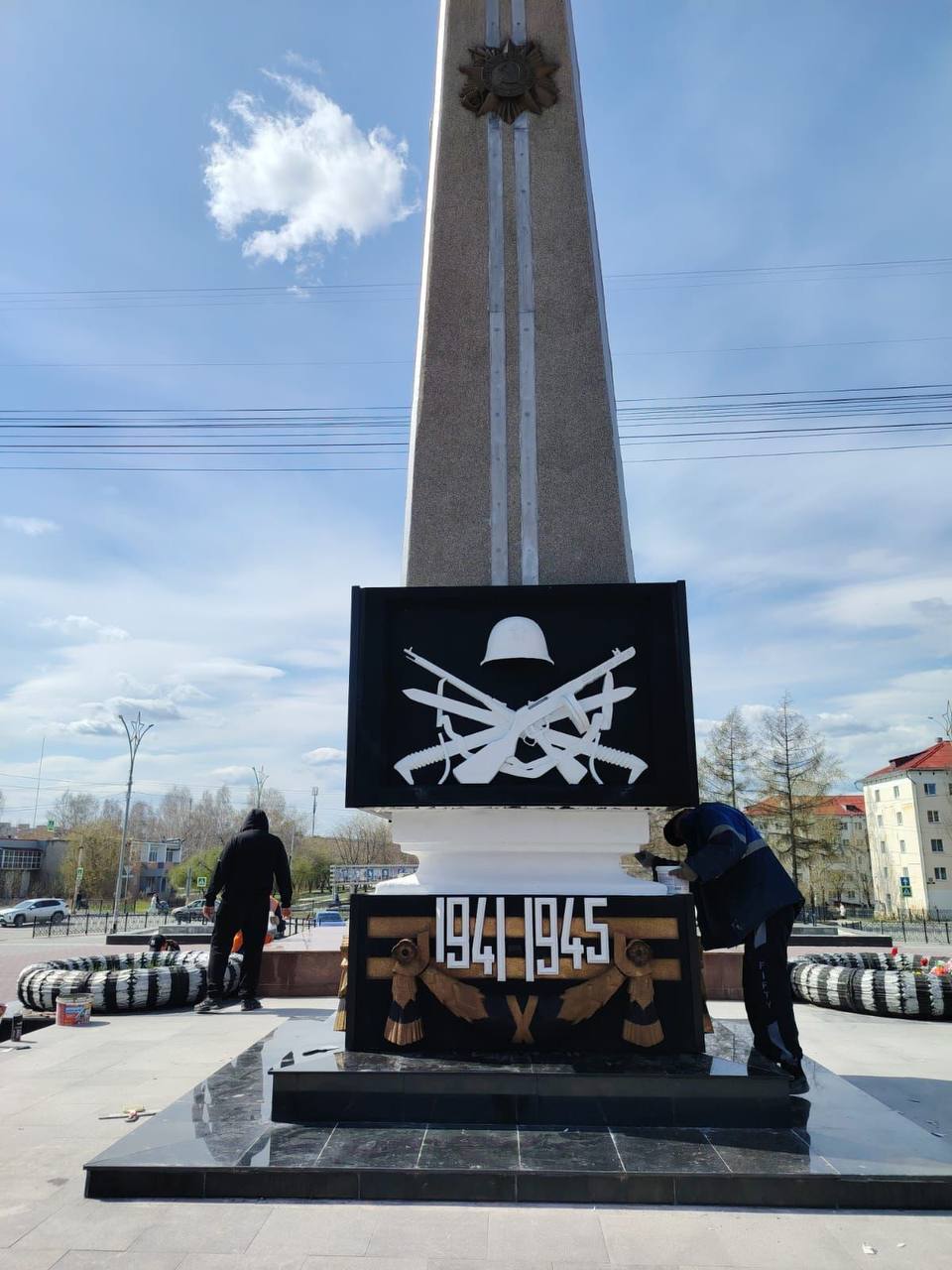 В рамках ремонта заменили декоративные элементы стелы, сохранив первоначальный дизайн, облицевали основание черным гранитом, а также обновили краску на поверхностях обелиска.