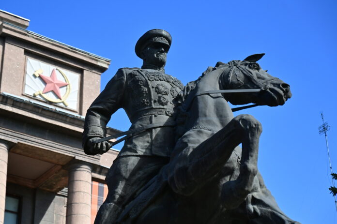 Памятник Маршалу Советского Союза Георгию Жукову уже участвовал в конкурсе «Достояние Среднего Урала» в 2024 году. Однако в год 80-летия Великой Победы не включить в короткий список монумент в честь Маршала Победы было бы невозможно. Экспертная комиссия вновь предложила свердловчанам назвать памятник Маршалу Советского Союза Георгию Константиновичу Жукову, установленный у главного входа штаба Уральского военного округа, достоянием.