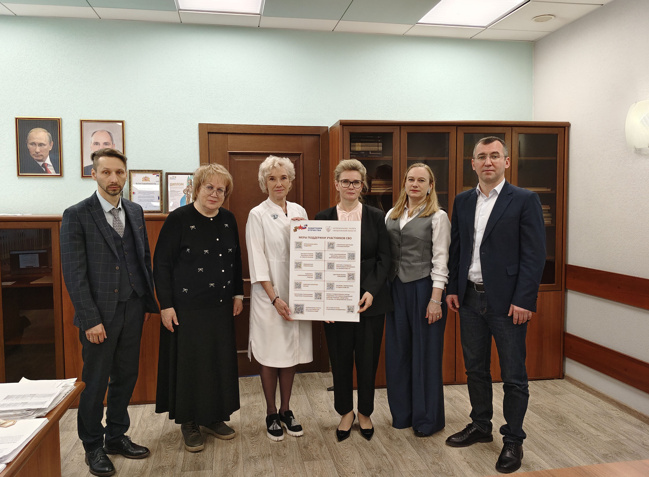 «На встрече представители ведомств обсудили проблемные вопросы оказания правовой и медицинской помощи участникам СВО, передали госпиталю специальные стенды с информацией о льготах, предоставляемых Нотариальной палатой Свердловской области и Фондом «Защитники Отечества» участникам СВО и членам их семей», — рассказали «ОГ» в госпитале.