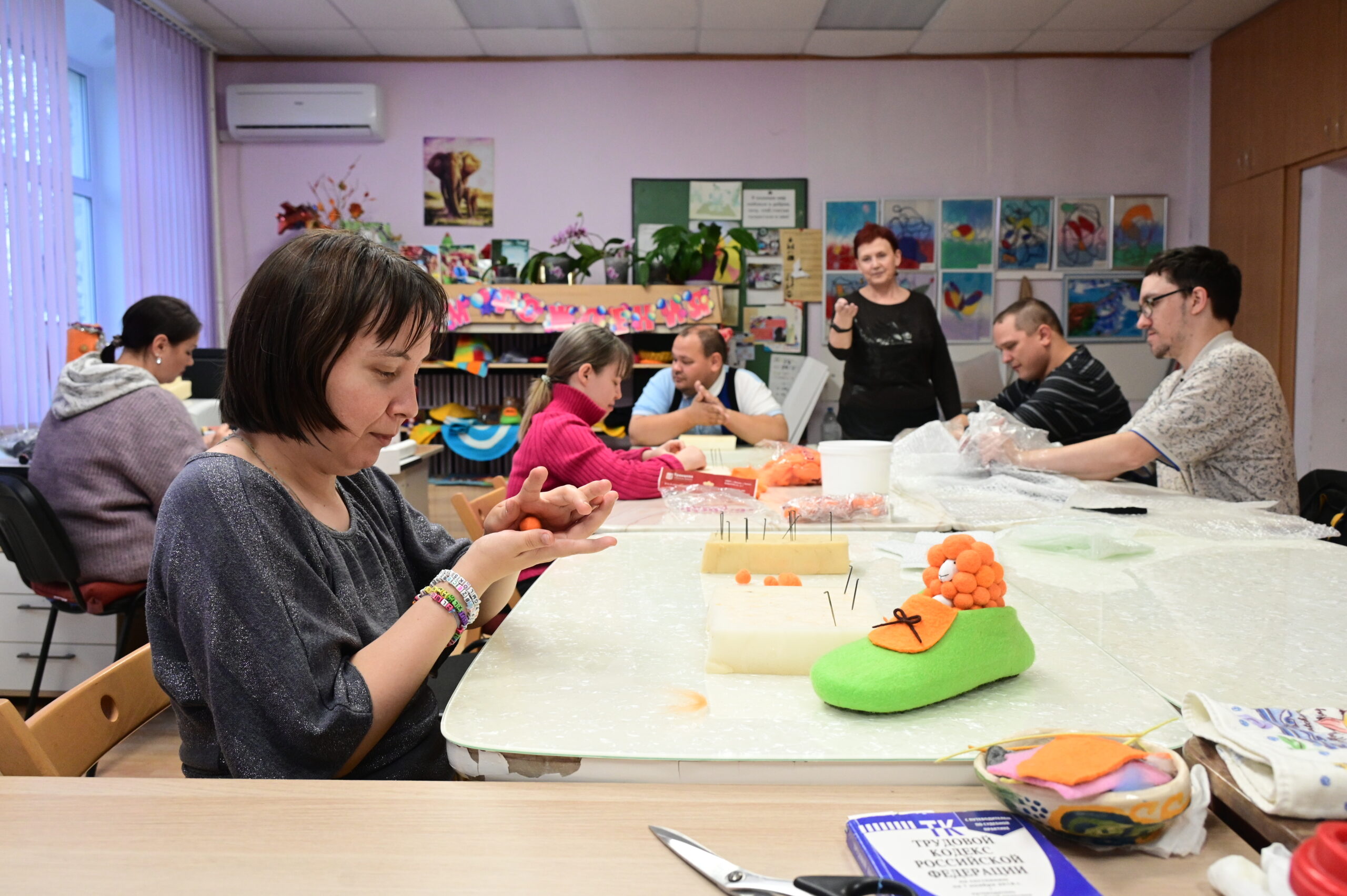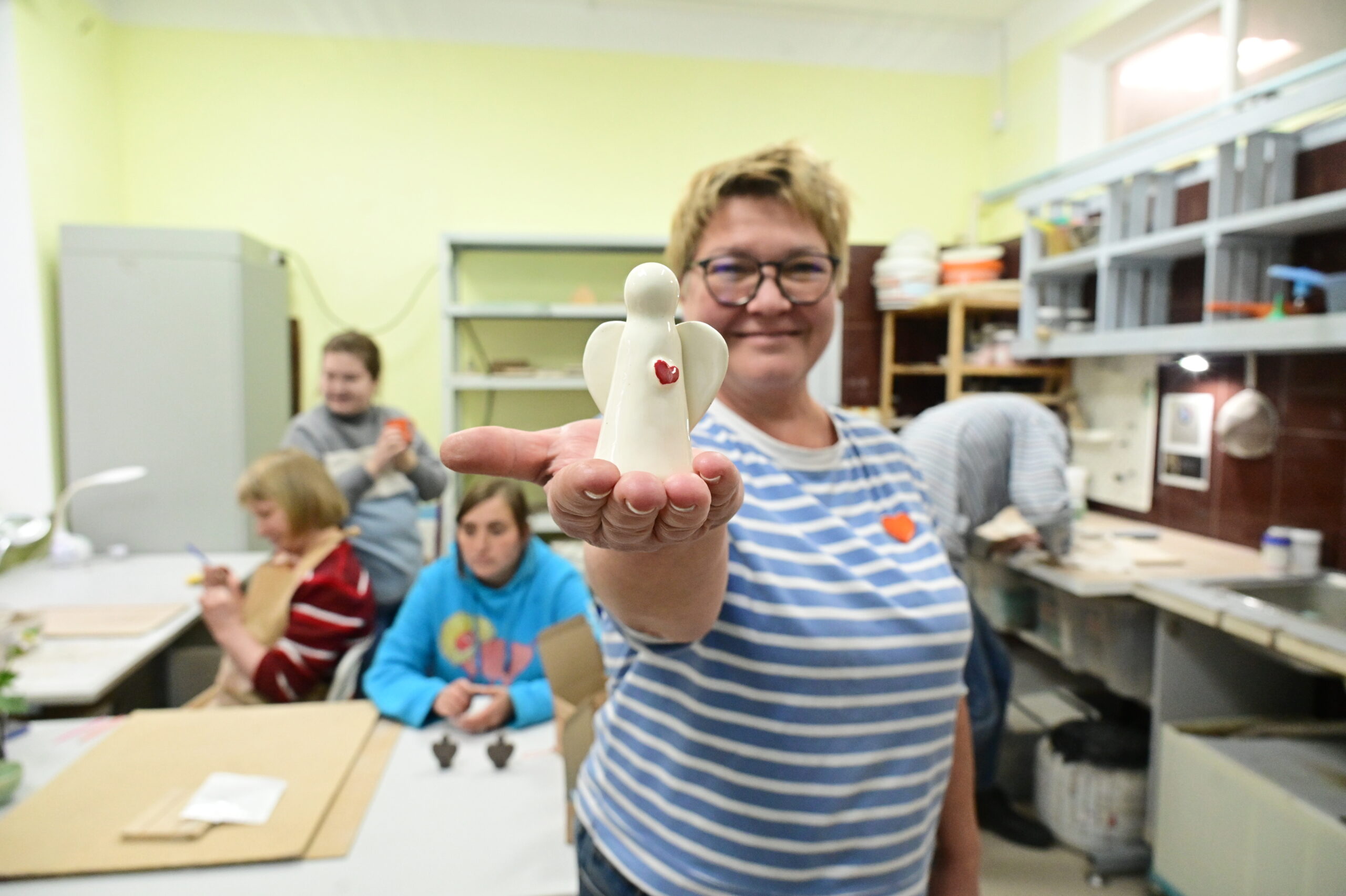 — У нас в организации есть специалисты индивидуального сопровождения и кураторы в мастерских. Новому человеку помогают войти в бригаду, попробовать себя в разной деятельности. Процесс в каждой мастерской разделен на мелкие операции. Например, в валянии из шерсти есть мокрое валяние (широкие движения) и сухое (мелкая моторика). В керамике — подготовка глины, формовка, шлифовка, роспись.