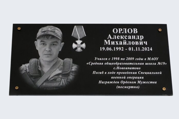 Мемориальную доску в память об участнике специальной военной операции Александре Михайловиче Орлове открыли в его родной Новоипатовской средней школе. На торжественном мероприятии присутствовали родственники бойца, ученики и педагоги школы. Об этом «ОГ» рассказали в пресс-службе Администрации Сысертского муниципального округа.