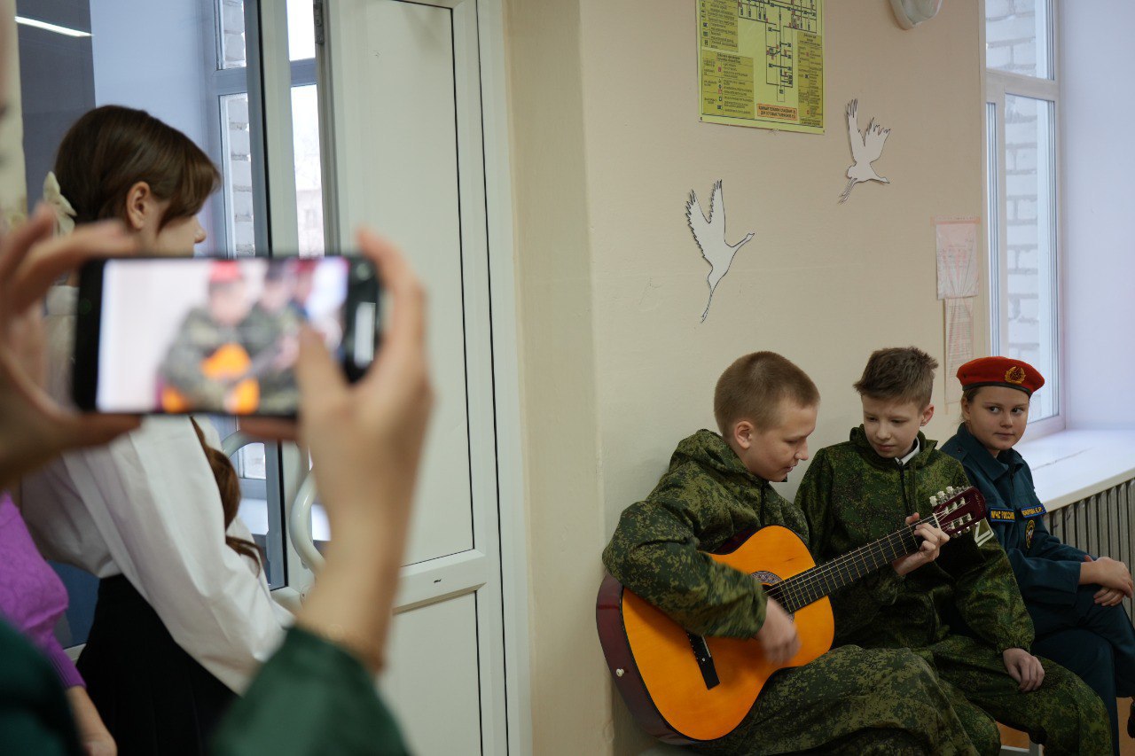 Гости слушали выступления школьной театральной студии, знакомились с формой участников СВО, беспилотными летательными аппаратами противника, захваченными в ходе боев, гильзами артиллерийских снарядов…