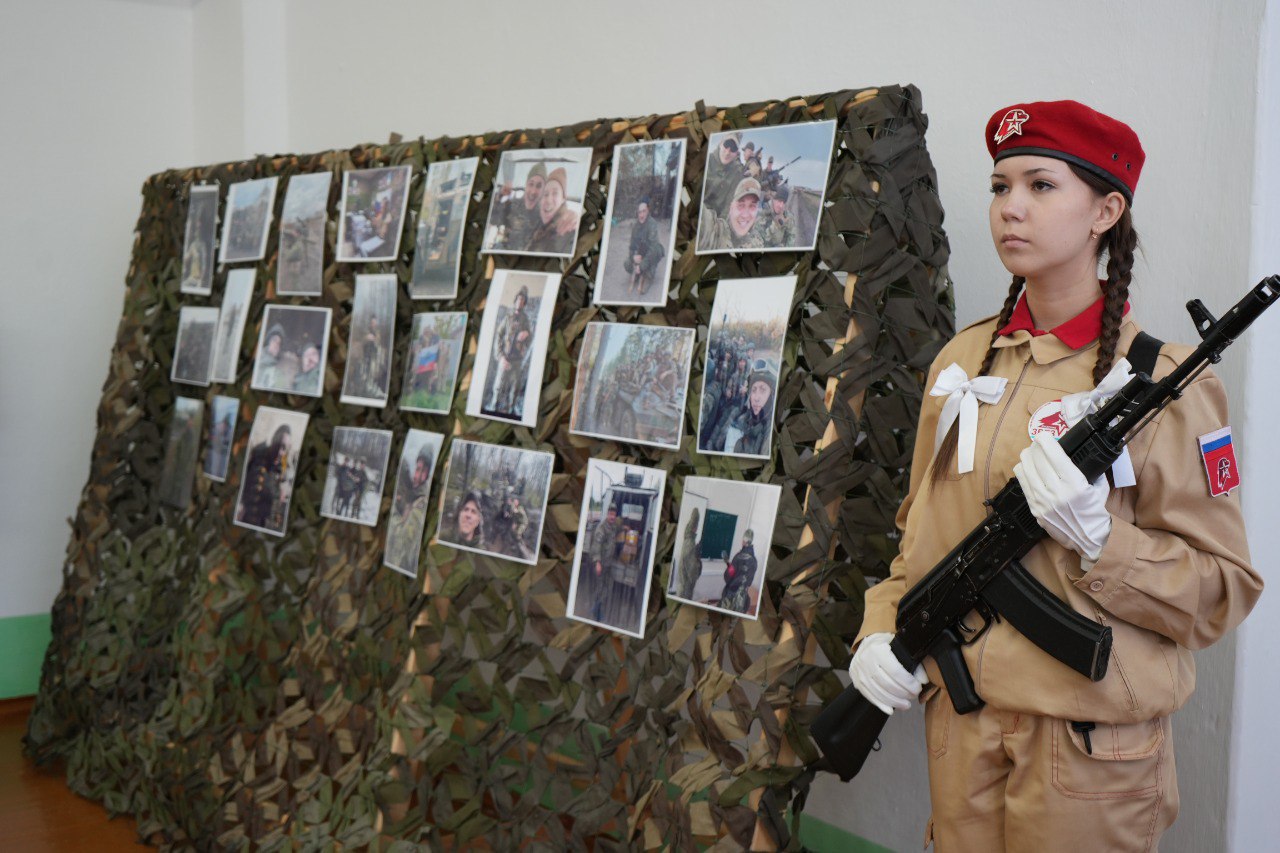 В небольшом кабинете разместили стенды с фотографиями, книги памяти, выставки экспонатов, рассказывающих о тяжелых, часто трагических страницах специальной военной операции. Содержание экспозиции музея, ее интересная подача, воспитательный и образовательный потенциал представленных в нем материалов делают его центром притяжения как обучающихся, так и гостей школы.