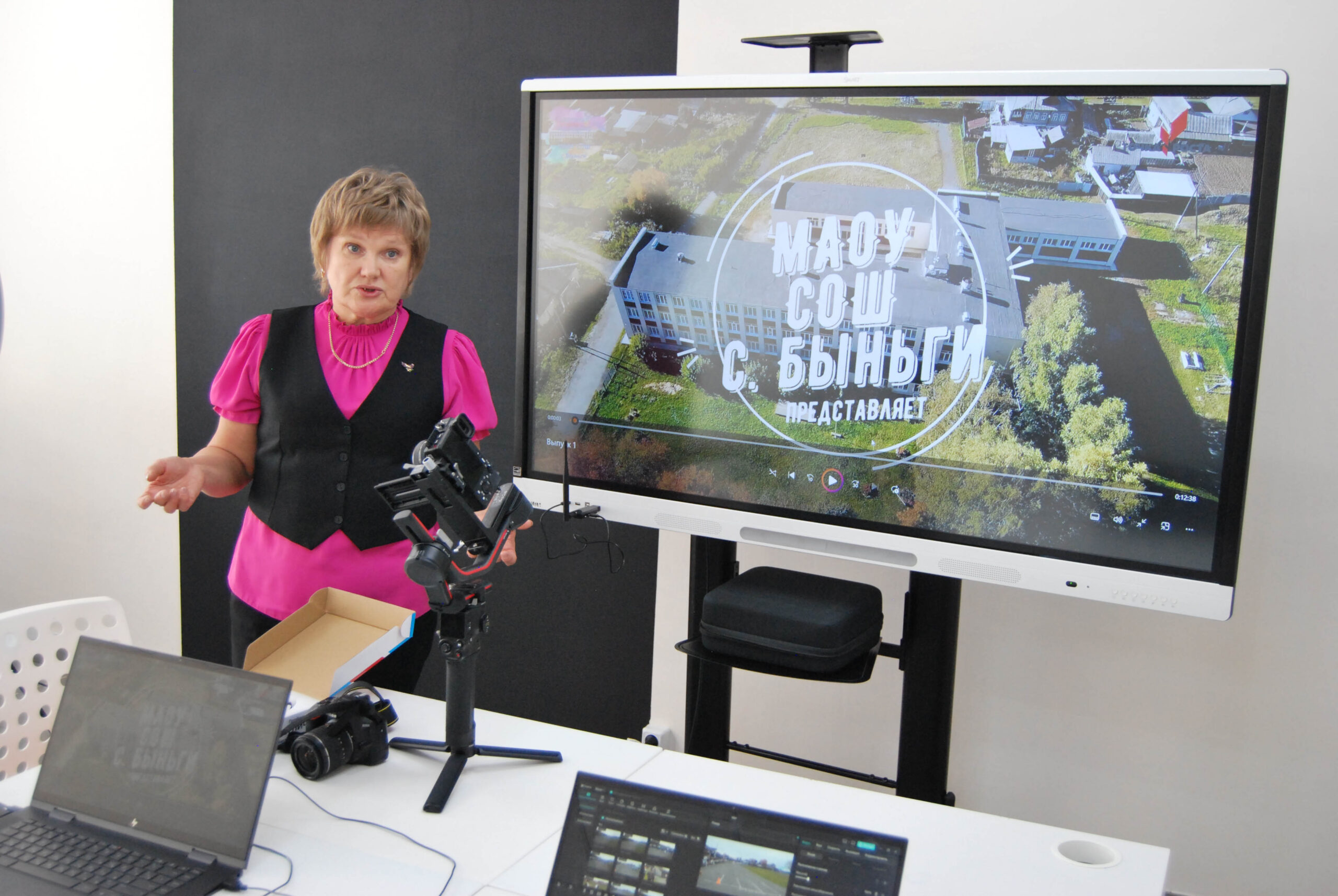 «В каждом классе у нас есть фотокорреспондент и корреспондент, которые готовят вести из классов. Затем всё это моделируется и выпускаются свои новости. У нас появился настоящий стабилизатор для съемки и камера очень хорошая», — рассказывает директор школы.
