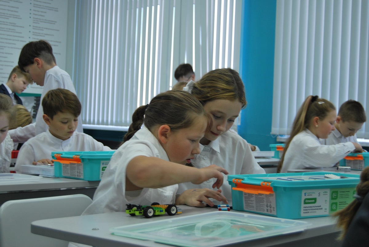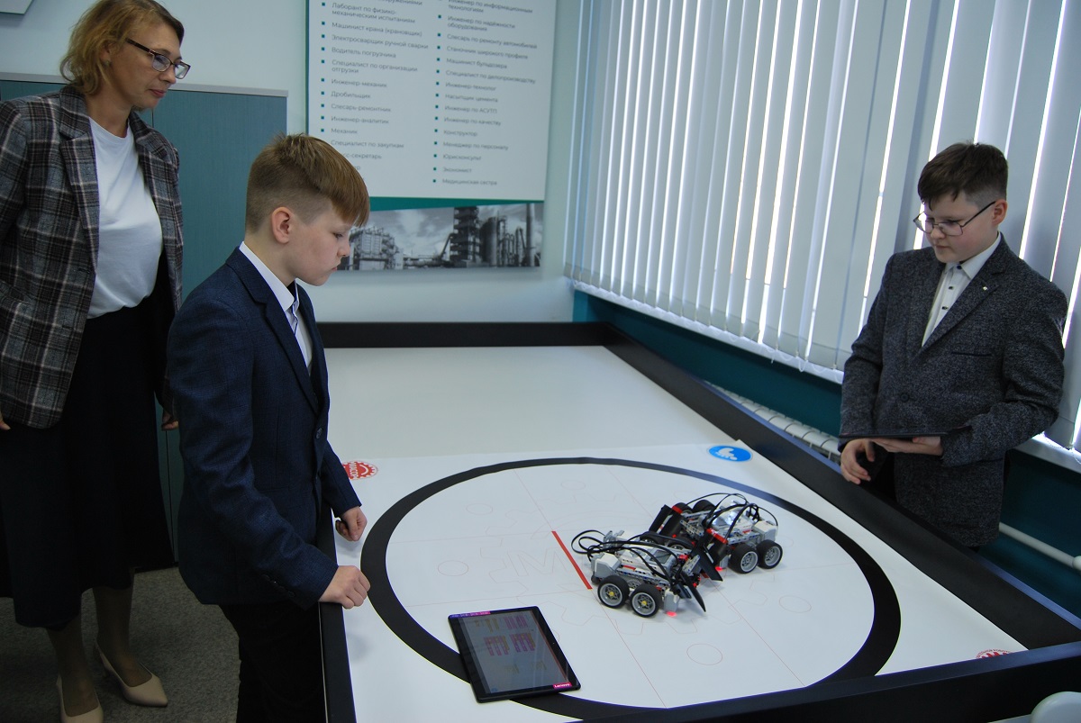 «Детский завод» — новинка школы поселка Цементного. А уже несколько лет здесь действуют классы робототехники и легоконструирования. Ученики с 1-го по 8-й класс (почти 650 человек) создают модели инструментов и машин, снимают легомультфильмы. Переходим в кабинет робототехники.