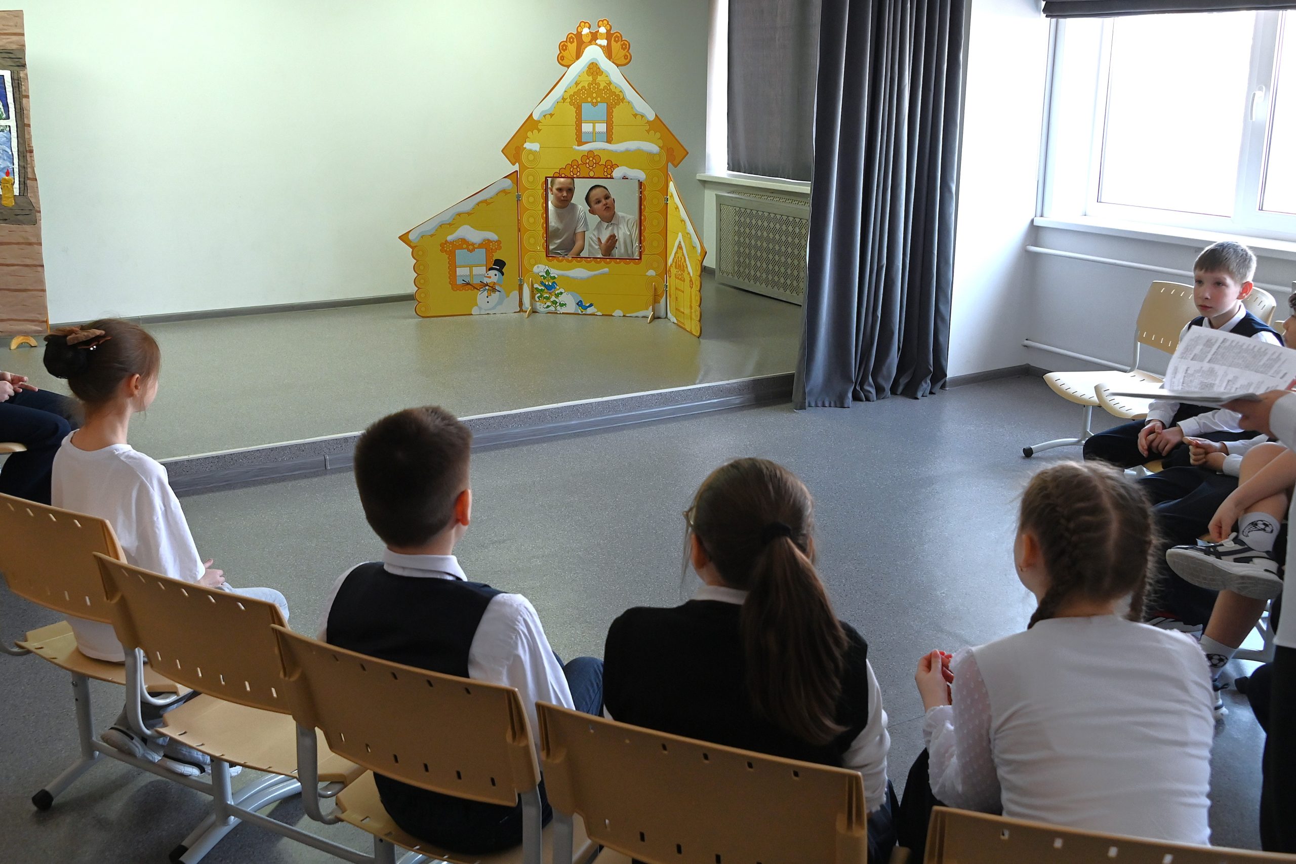 Уже с первых лет обучения ребята вовлечены в проекты дополнительного образования. В школе оборудованы мини-актовый зал, хореографическая студия, театральная студия «Вдохновение». Во время нашего визита группа младших школьников под руководством педагога Полины Шарковой репетирует сказку «Заюшкина избушка». Визита незнакомых взрослых, да еще и с фотоаппаратом, ребята совсем не стесняются: актеры ведь.