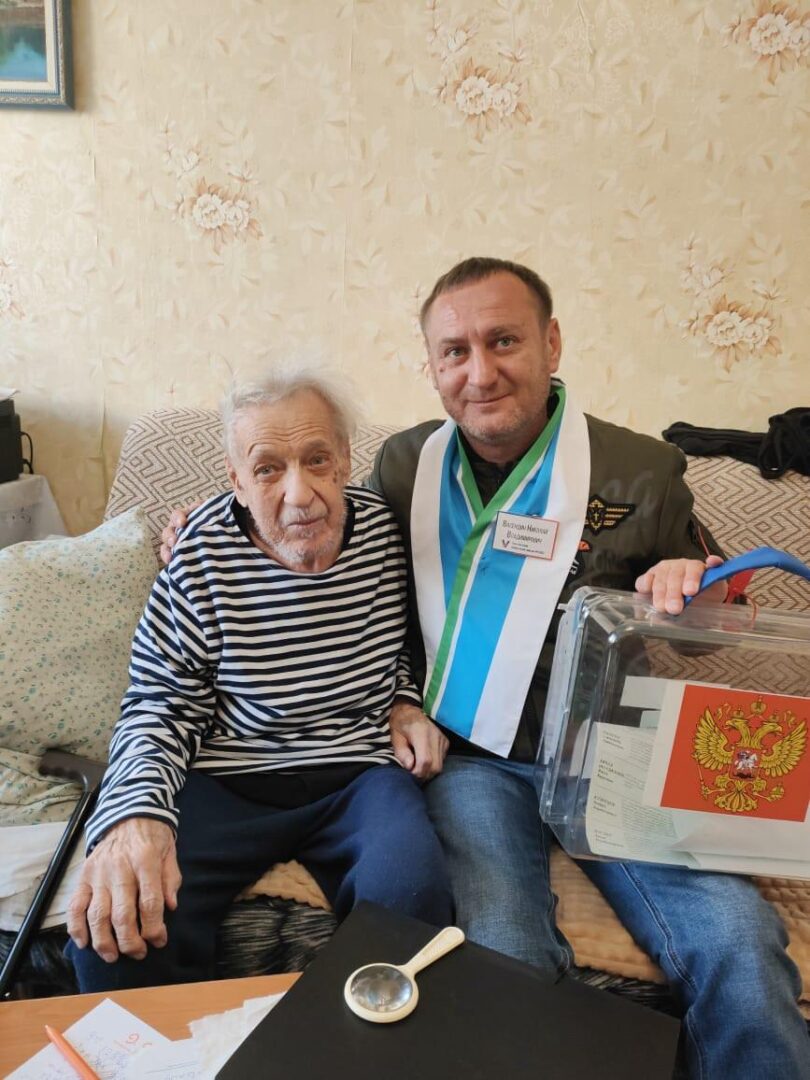 Ветеран Великой Отечественной Сергей Мальцев из Бисерти принимает участие в выборах губернатора дома. Сергей Арефьевич отметил этим летом свой 103-й день рождения. К ветерану приезжает выездная комиссия с урной для голосования.