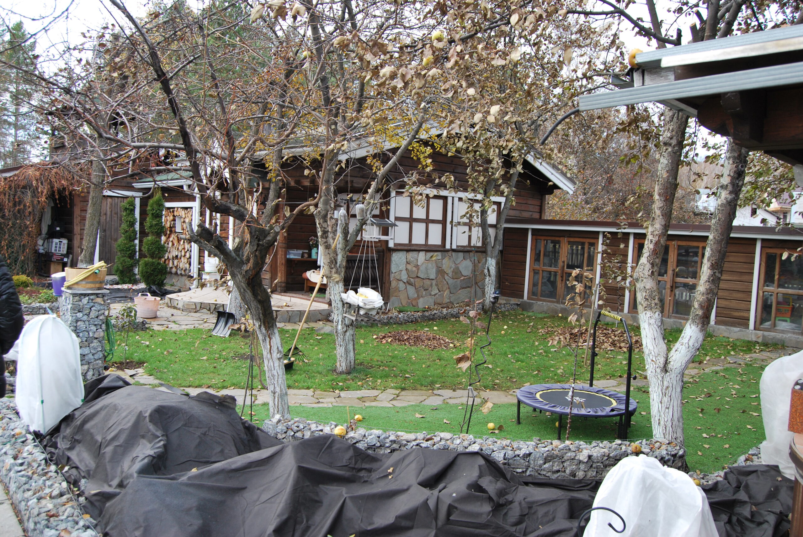 Стволы деревьев белить можно лишь до установления морозов. При минусовых температурах их следует обвязать белым спанбондом.