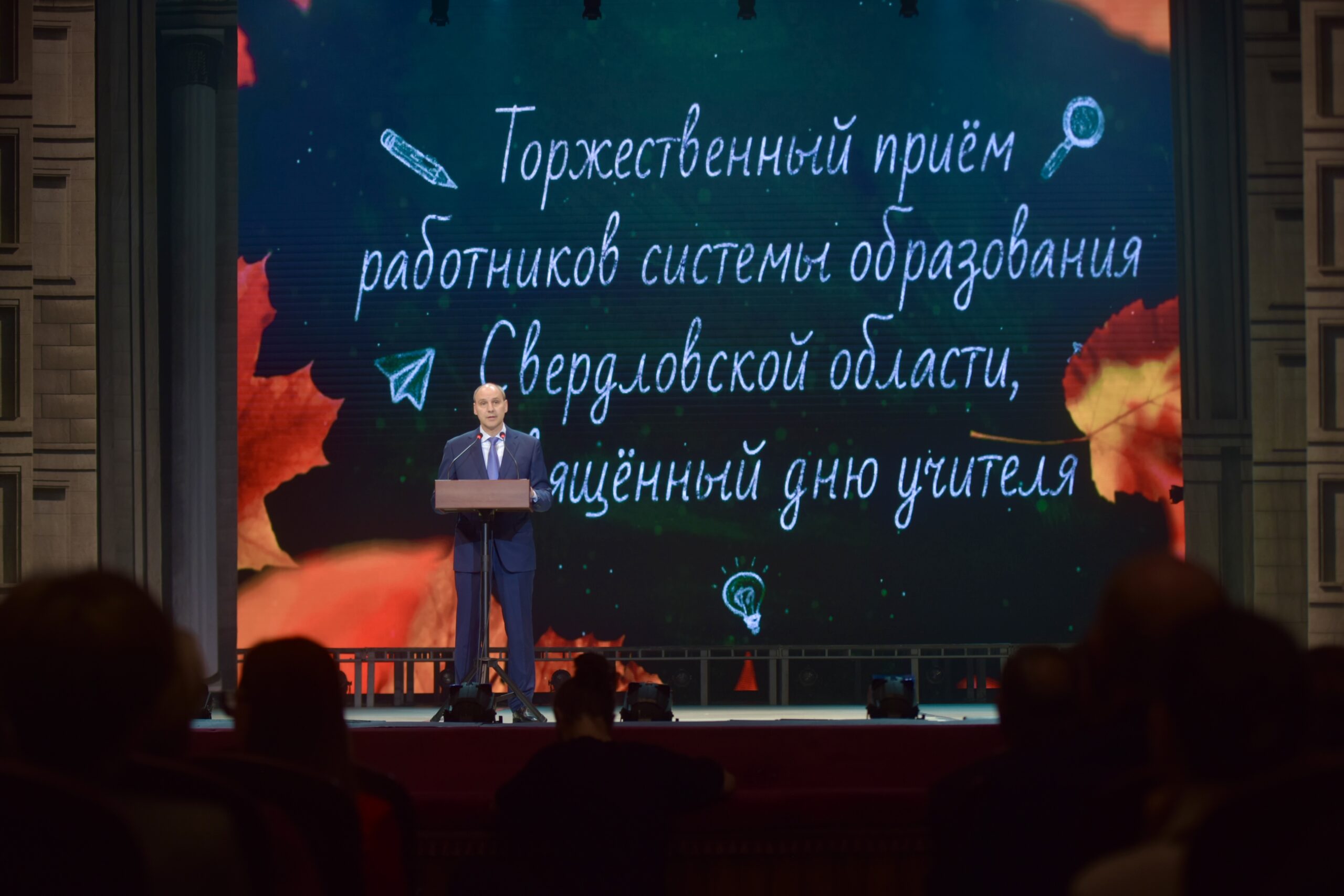 Поздравляя учителей, Денис Паслер напомнил о мерах поддержки педагогов, которые действуют в Свердловской области.