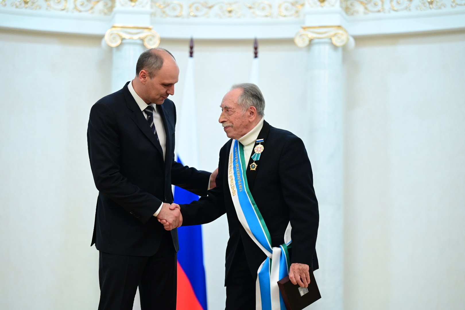 Кроме того, Денис Паслер вручил орден «За заслуги в культуре и искусстве» артисту Екатеринбургского театра юного зрителя Владимиру Иванскому. За более чем 50 лет работы в ТЮЗе заслуженный артист России сыграл 120 ролей, также он занимается постановкой и режиссурой спектаклей.