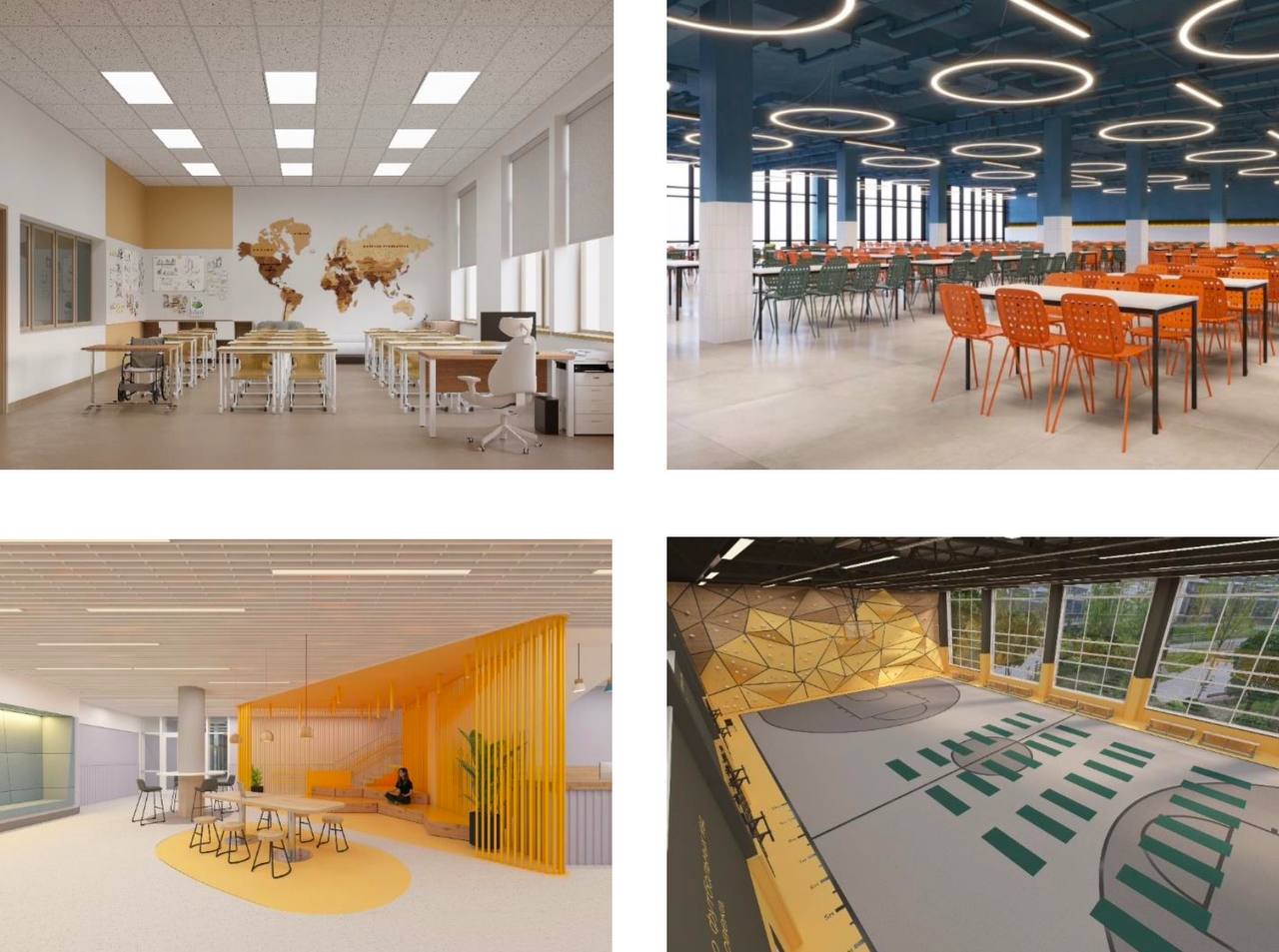 Планировочное решение будущих школ отличается продуманным зонированием, современным и комфортным дизайном, а также уютным оформлением. При проектировании учтена необходимость использования новейшего оборудования и мультимедиа с аудиовизуальными средствами обучения.