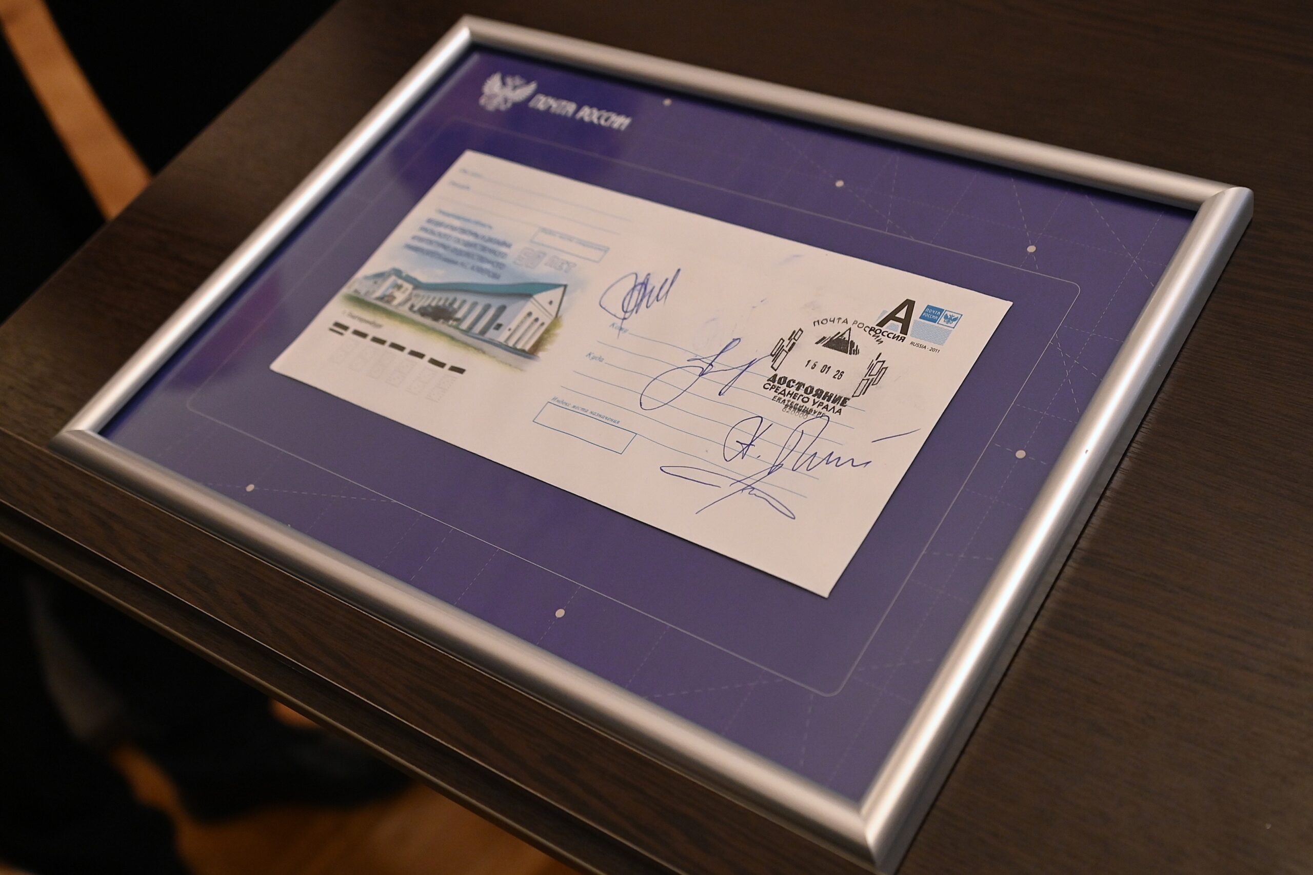 Церемонию награждения предварило гашение почтового конверта штемпелем, посвященным присвоению общественного статуса «Достояние Среднего Урала». На конверте изображен Исторический сквер Екатеринбурга – один из финалистов конкурса ДСУ 2025 года.