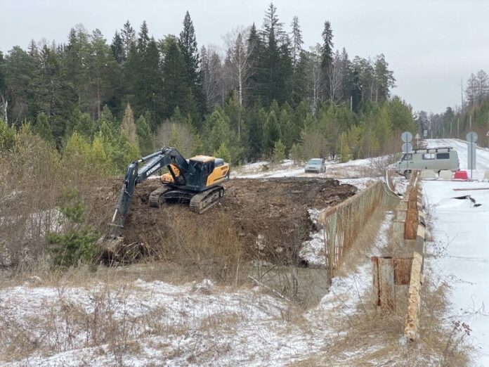 Дорожники оперативно приняли все меры, чтобы обеспечить безопасное и беспрерывное движение легкового транспорта по мосту. Сейчас специалисты обустраивают временный объезд для удобства местных жителей. Идет монтаж водопропускных труб и земляные работы. Потом дорожники выполнят отсыпку скальным грунтом и уложат железобетонные плиты», — написал Денис Паслер в своем канале в Max.