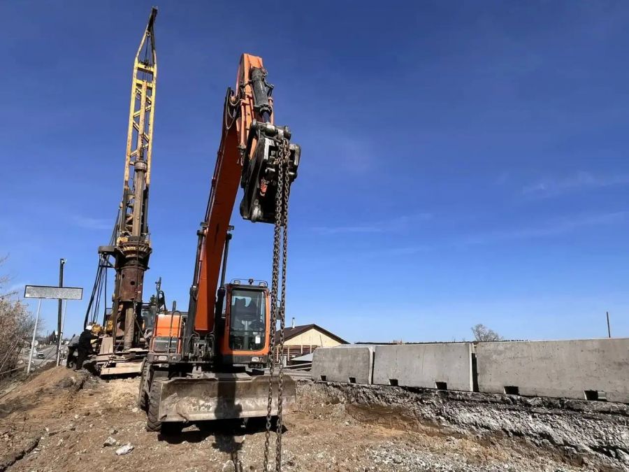На очереди — демонтаж опор, после чего специалисты приступят к устройству новых конструкций. Для этого на площадку уже прибыла тяжелая техника: бурильно-крановая машина и мощный экскаватор.