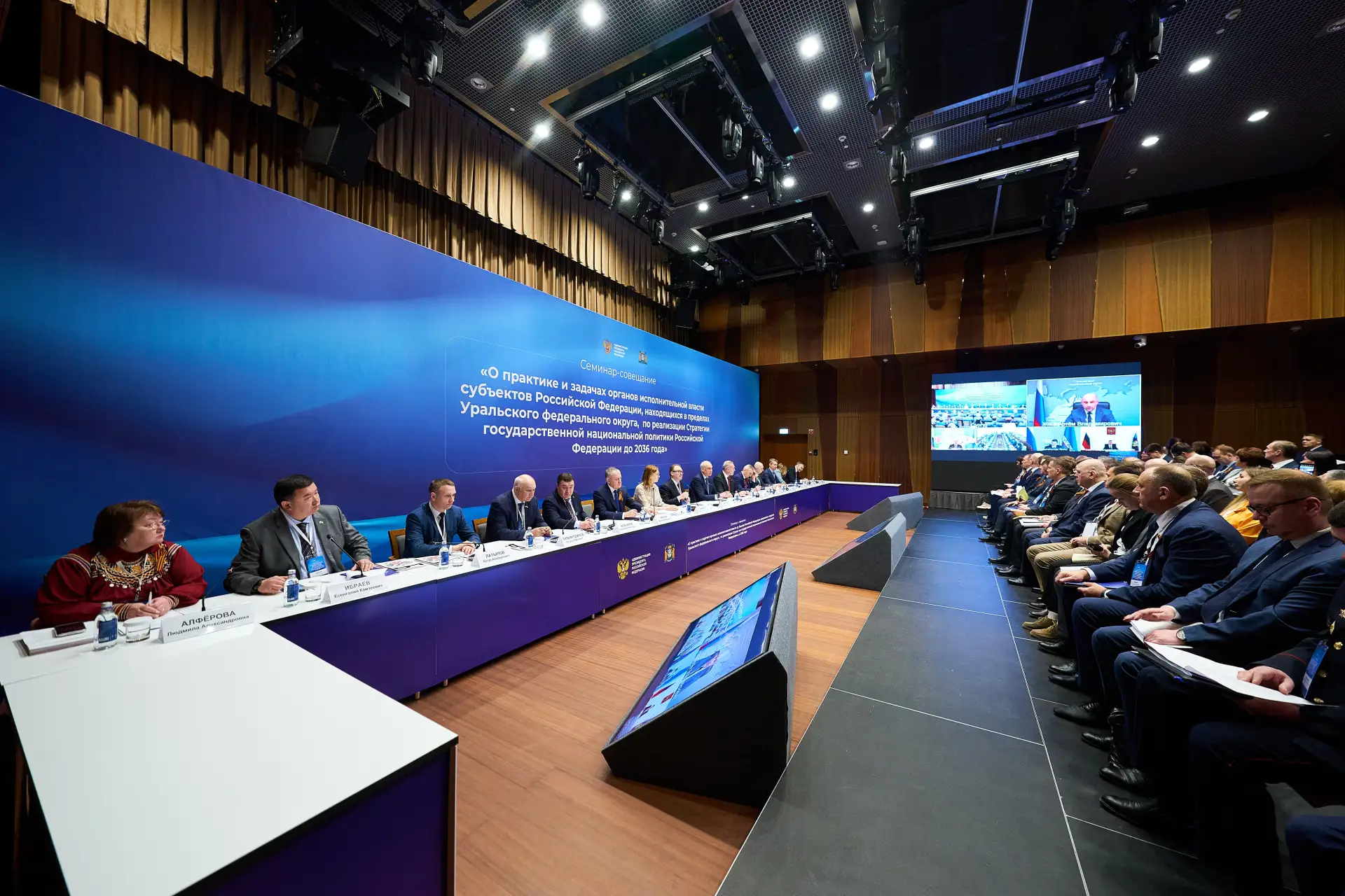 В совещании также приняли участие заместитель генерального прокурора России Сергей Зайцев, заместитель руководителя Федерального агентства по делам национальностей Станислав Бедкин, губернаторы регионов Уральского федерального округа, представители силовых структур, общественных объединений и образовательных учреждений.