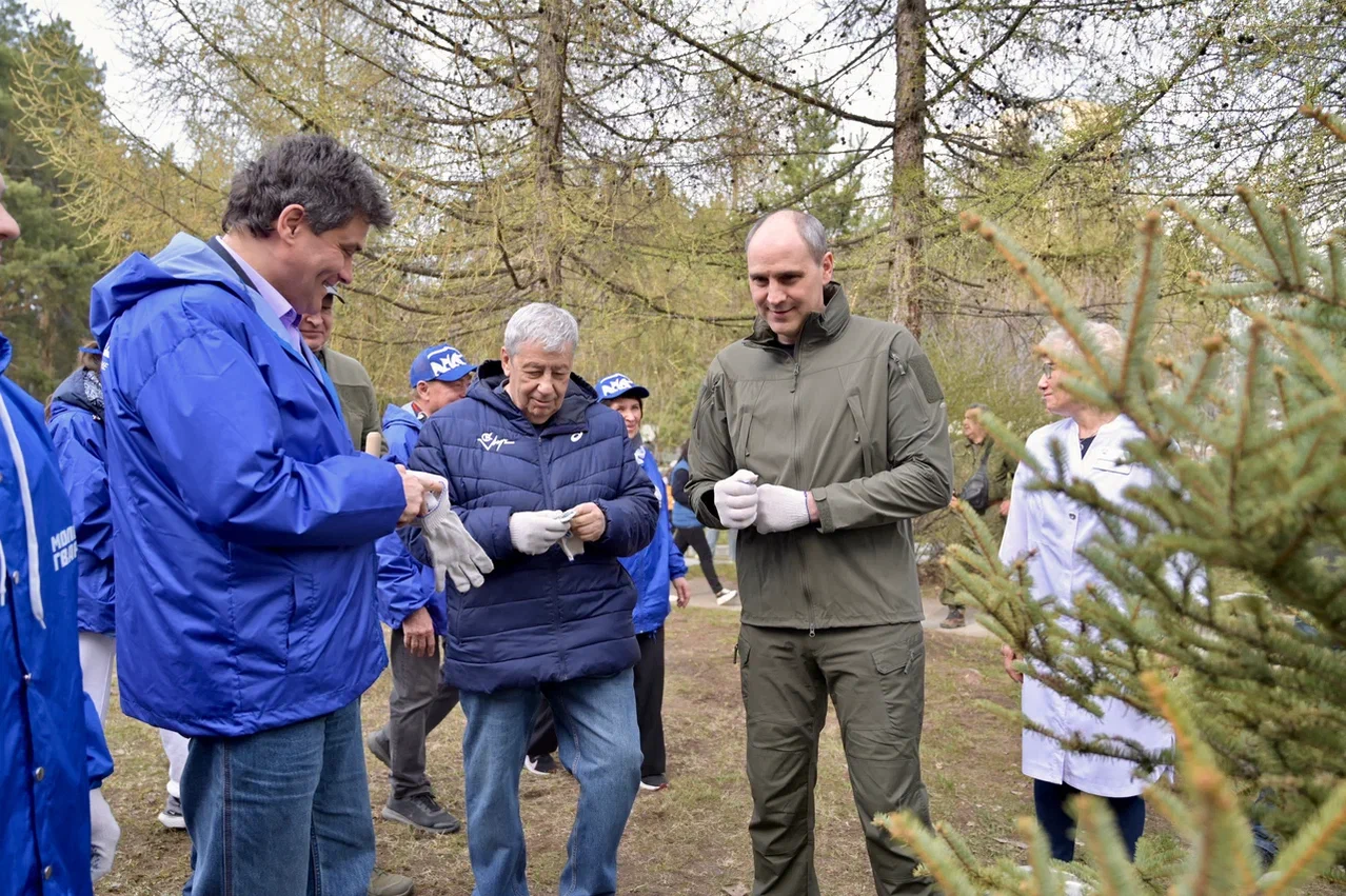 Сенаторы от Свердловской области Виктор Шептий и Александр Высокинский тоже присоединились к акции. Виктор Анатольевич — один из тех, кто стоял у истоков этой традиции — проводить субботники у Госпиталя для ветеранов войн. Он без труда узнает ели и яблони, которые сажал здесь в течение последних двадцати лет вместе со своим коллегой, депутатом Заксобрания Виктором Бабенко.