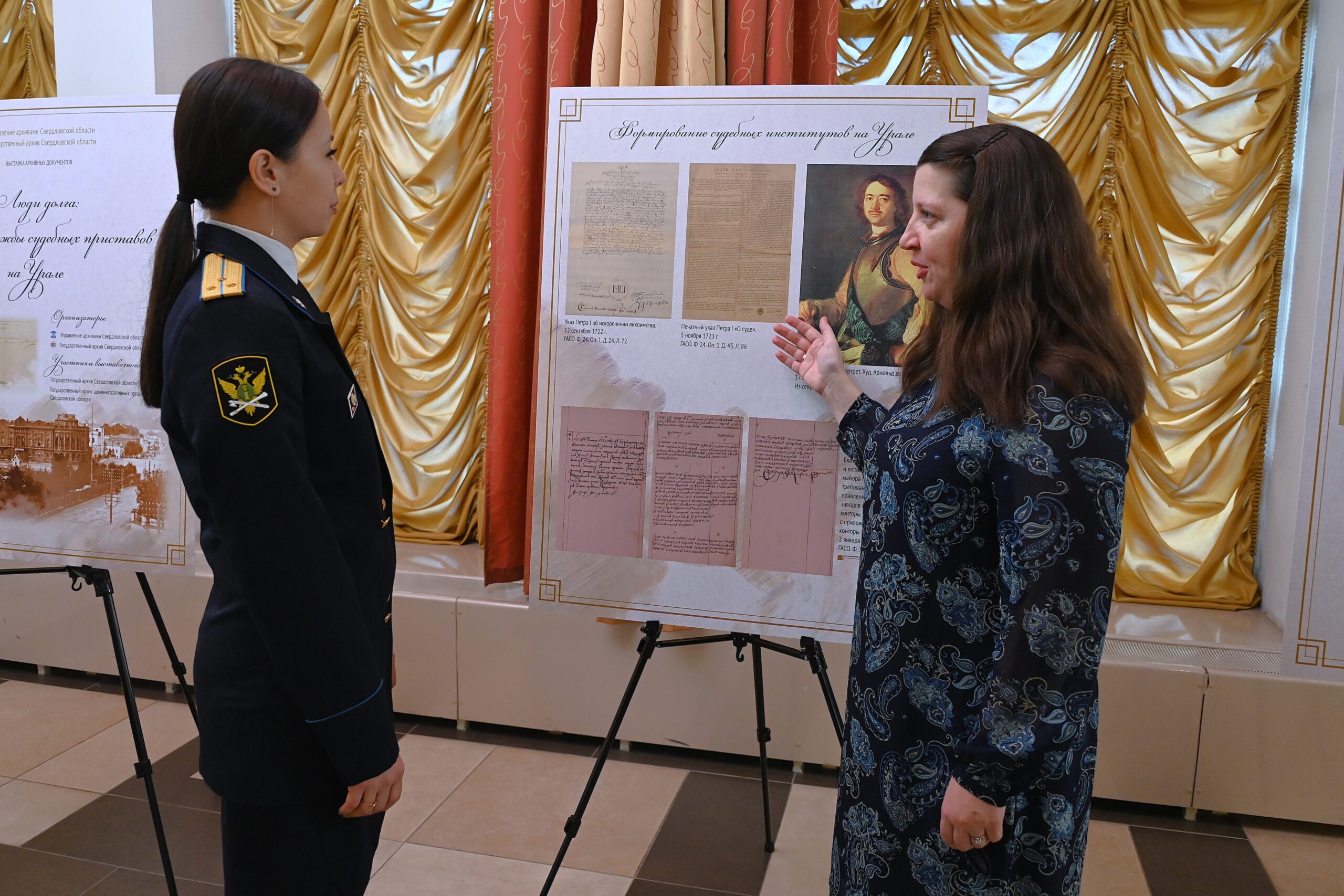 В честь юбилея ФССП открылась историко-документальная выставка архивных документов «Люди долга: история службы судебных приставов на Урале», организаторами которой стали Управление архивами Свердловской области и Государственный архив Свердловской области. На выставке представлены документы Государственного архива Свердловской области и Государственного архива административных органов Свердловской области, через которые зритель узнает о формировании службы судебных приставов. На самой экспозиции можно ознакомиться с копиями наиболее ранних документов по истории судебной власти на Урале, в том числе с указом Петра I об искоренении лихоимства. В состав выставки вошли документы, демонстрирующие практику имущественных взысканий на Урале XVIII – первой половины XIX века – описи имущества, челобитные, решение имущественных споров, документы об учреждении Екатеринбургской полиции и Екатеринбургской городской управы благочиния.