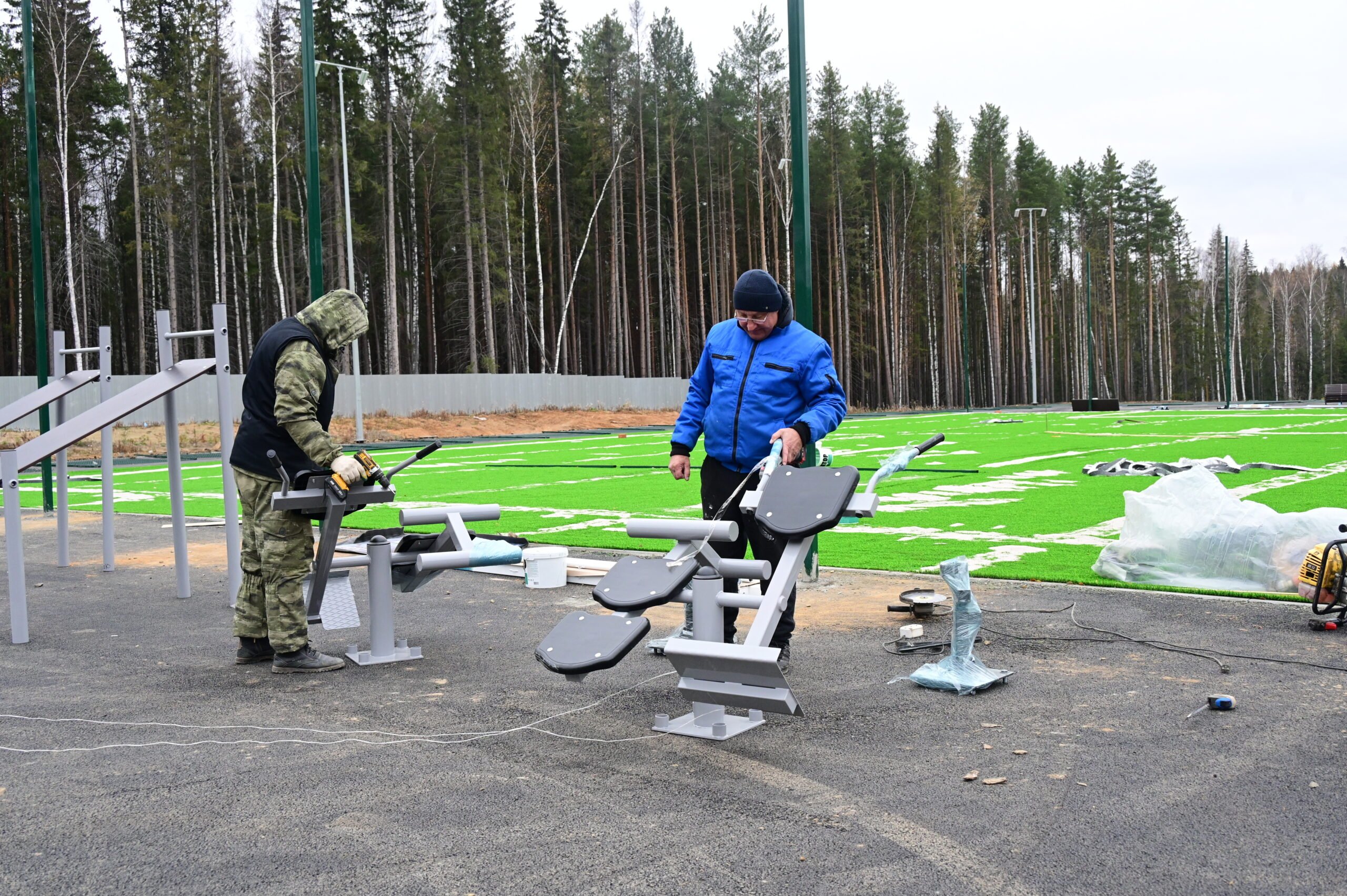 Чуть поодаль оборудована площадка с баскетбольными кольцами, рядом также появится пространство для воркаута. Почти все работы здесь завершены, финальным штрихом станет оборудование всех площадок и беговой дорожки специализированным резиновым покрытием. Вокруг всей спортивной территории для безопасности установят забор.