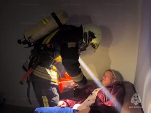 Специалисты МЧС и добровольные пожарные оперативно прибыли на место условного происшествия. Звено газодымозащитной службы провело разведку обстановки, после этого пожарные проложили рукавные линии для подачи огнетушащих веществ. Параллельно провели эвакуацию трех условных пострадавших из зоны задымления с использованием специальных спасательных устройств и средств индивидуальной защиты органов дыхания.