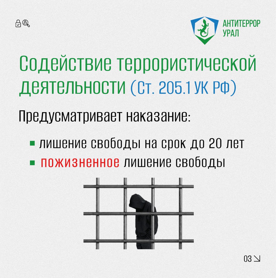 Но такие ситуации влекут за собой только одно — уголовную ответственность. За преступления террористической направленности она наступает с 14 лет. Срок, в зависимости от тяжести преступления, варьируется от 8 до 20 лет заключения и больше. Чтобы этого избежать, необходимо помнить, что у каждого человека есть выбор. Можно поддаться шантажу и перейти черту закона, а можно обратиться за помощью, ведь никакие деньги, тем более заработанные нелегально, не стоят свободы.