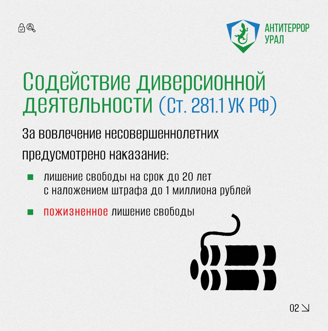 «Представим ситуацию. Человек видит объявление о работе, видит оклад и переходит в личные сообщения. Спрашивает, что необходимо сделать. Обычно предлагают поджог памятника, релейных шкафов или автомобиля. Вакансии две — поджигатель и оператор. И если случай с поджогом еще может остановить, потому что это выглядит как незаконная деятельность, то в случае с оператором кажется, что это безобидно. Тем не менее это не так», — рассказала официальный представитель УФСБ России по Свердловской области.