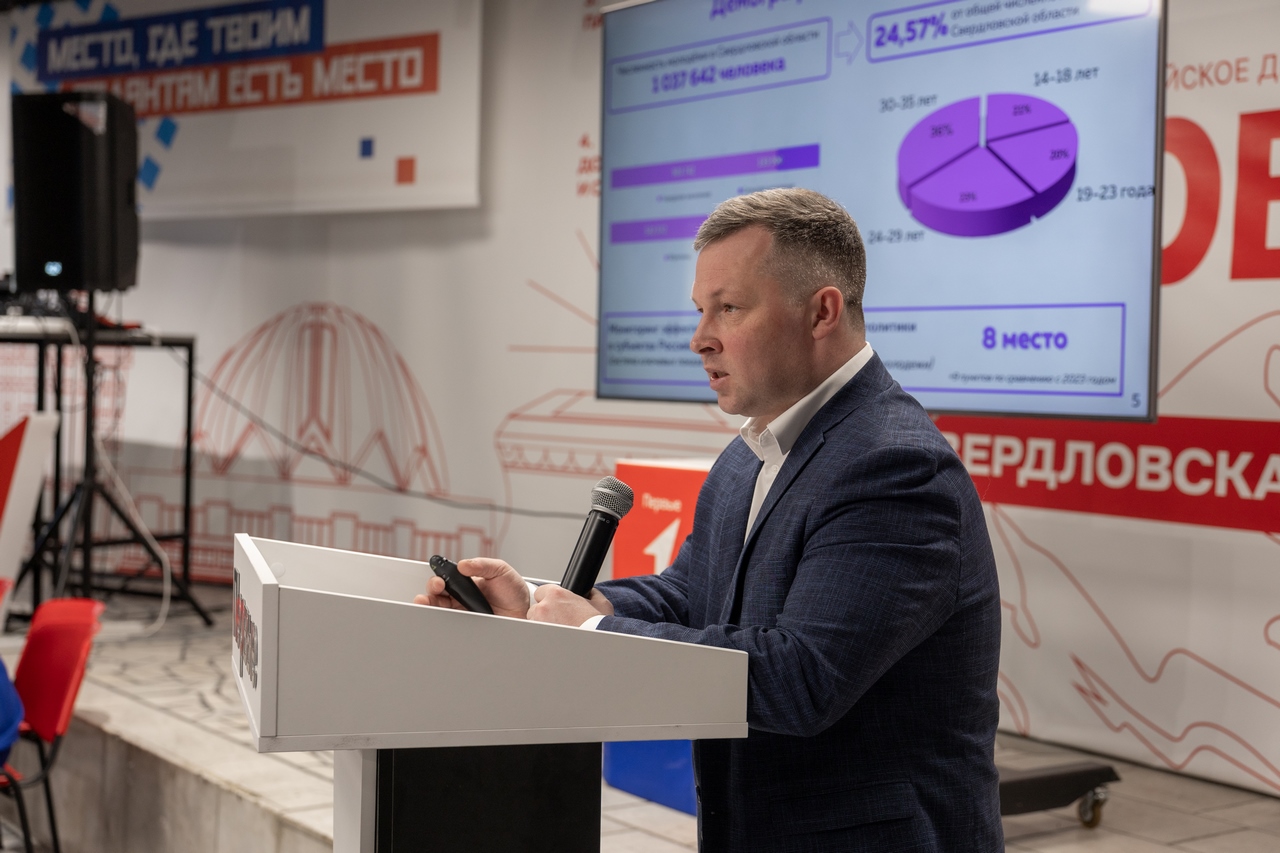 С приветственным словом к участникам сессии обратился директор Департамента молодежной политики Свердловской области Денис Протасов. Он подчеркнул, что на Среднем Урале работа с молодежью ведется системно и на всех уровнях — от муниципального до регионального.